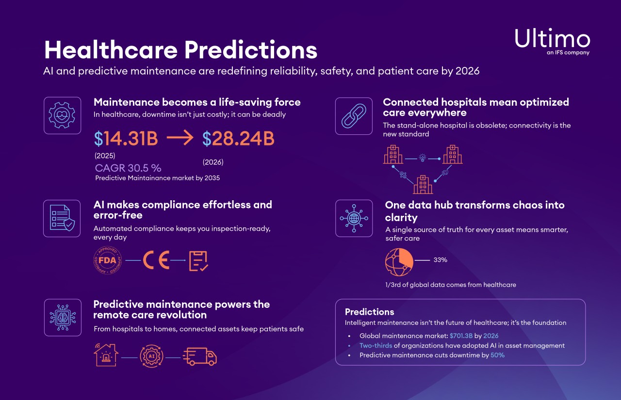 At Ultimo, we see a different future. One where intelligent asset maintenance becomes healthcare's secret weapon against rising costs and a powerful driver of patient safety. Here are our five predictions for how asset maintenance will revolutionize healthcare delivery in 2026.
